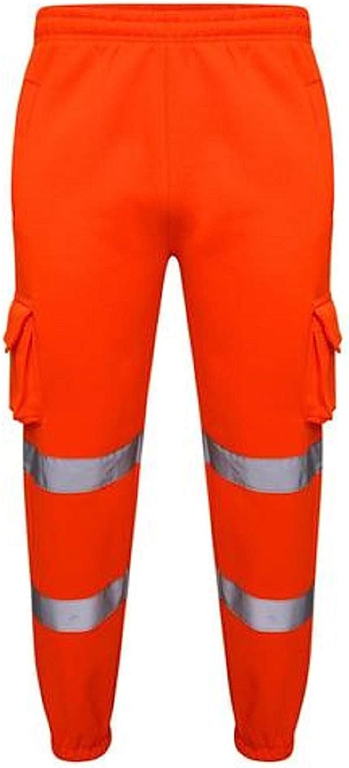 Romaans Hi Vis Jogging Bottoms High Visibility Combat Cargo Thick Trousers Reflective Tape Safety Work Wear Elasticated Waist Joggers Sweat Jog Tracksuit Pants